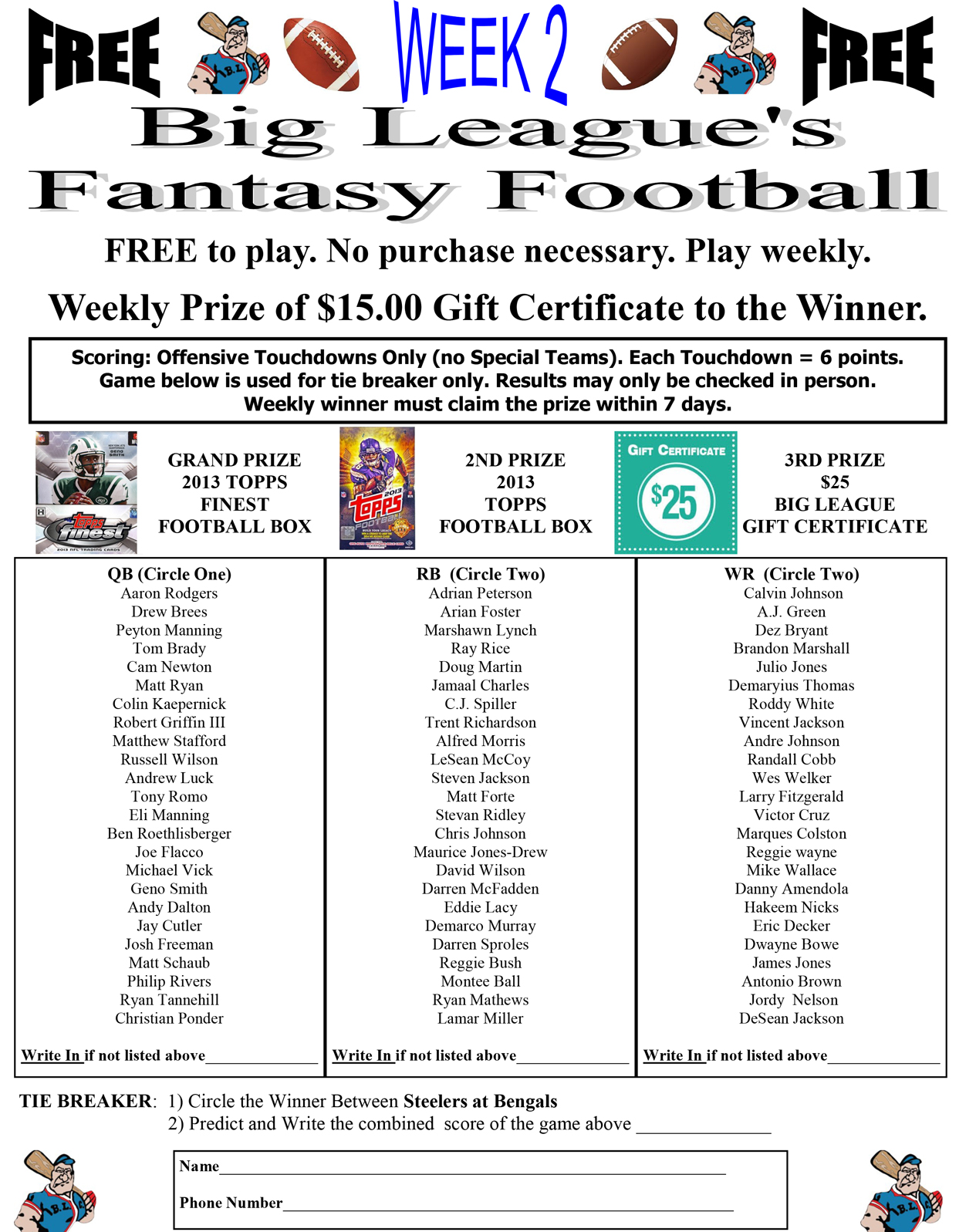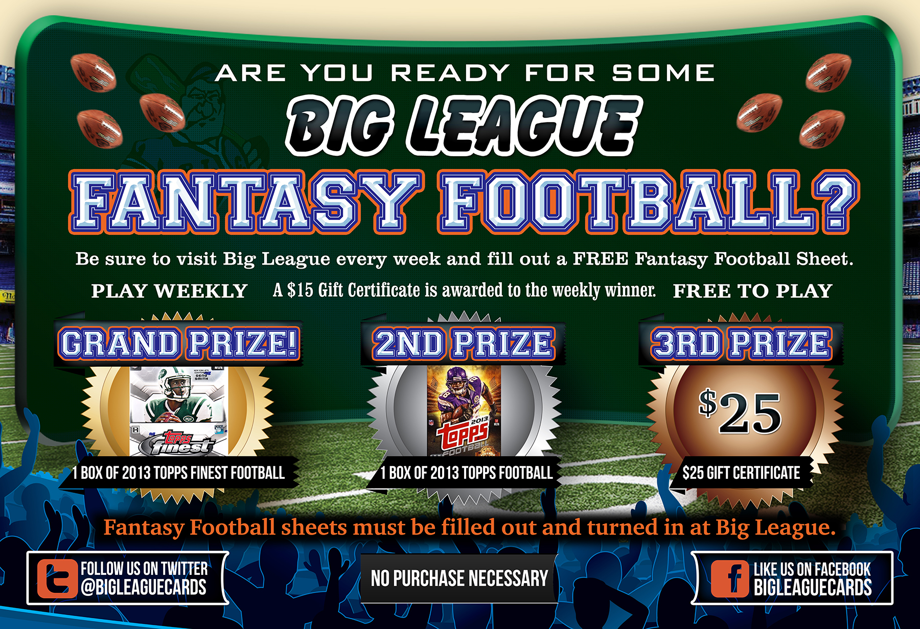 Fantasy Football Sheets must be filled out and turned in at Big League.